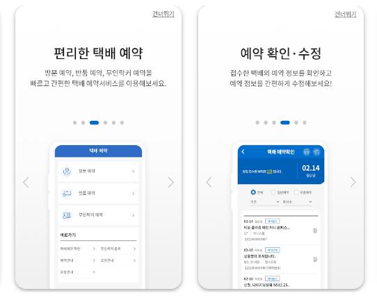 어플을 통해 택배 예약과 변경이 가능하며, 편리한 사용자 인터페이스를 제공합니다.